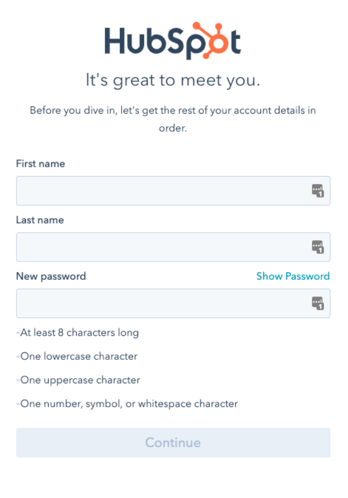 Logging into HubSpot for the first time