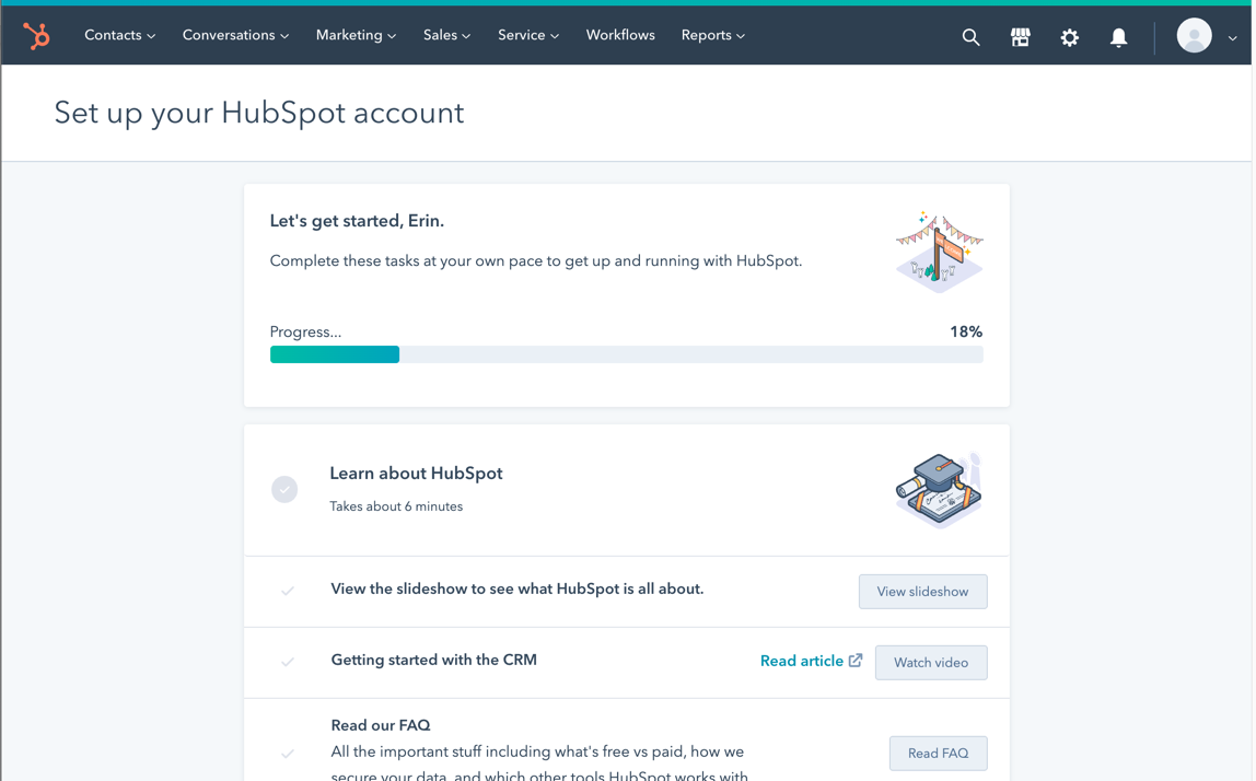 - Then you will see the Welcome Screen in HubSpot!