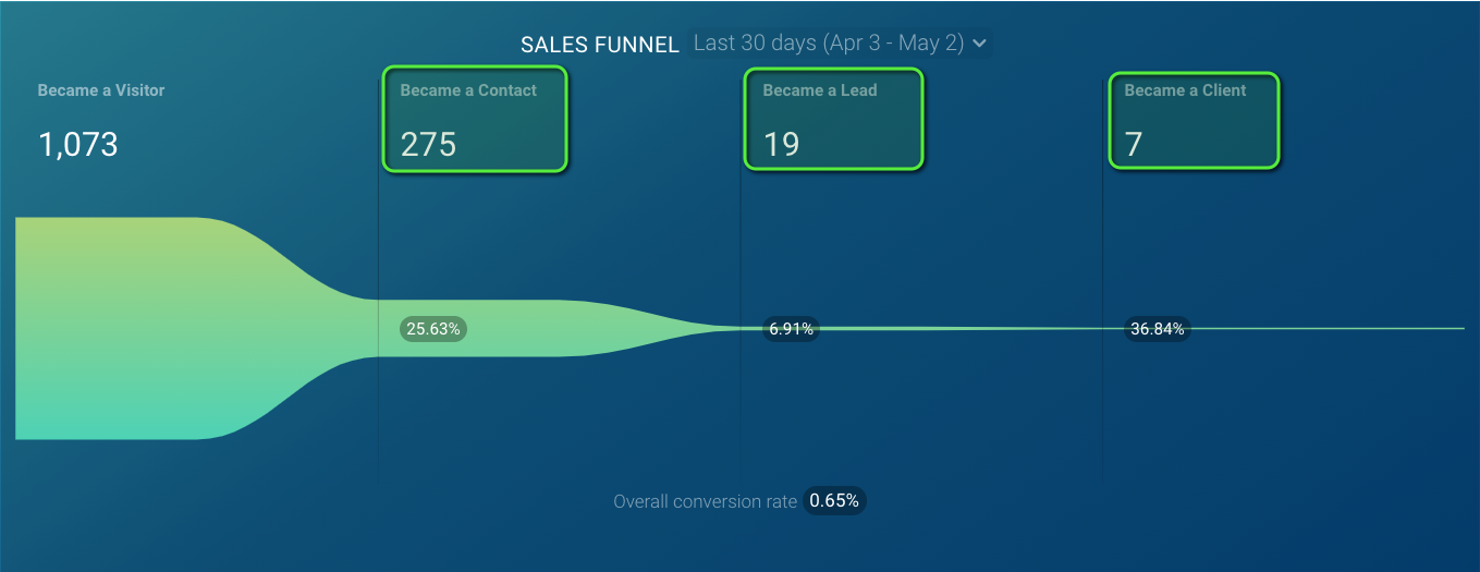 Became a Client: This is a total summary of all of the deals that entered the closed/won stage of your sales pipeline.