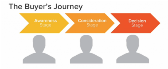 The buyer's journey describes a buyer's path to become a customer. Buyers go through a process typically starting with the awareness stage, then the consideration stage and then to making a decision or the decision stage. During this journey the goal of marketing is to understand the buyer's needs and provide them the information they need in order for them to reach their goals.