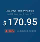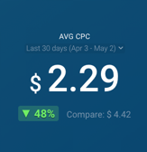 Average CPC: This section is showing the average cost per click from your current paid ads campaigns as well as the percentage increase or decrease from the previous time period of the report.